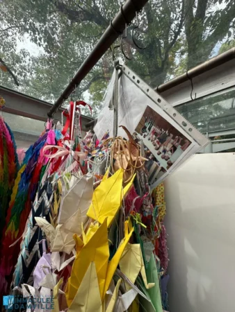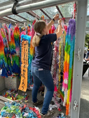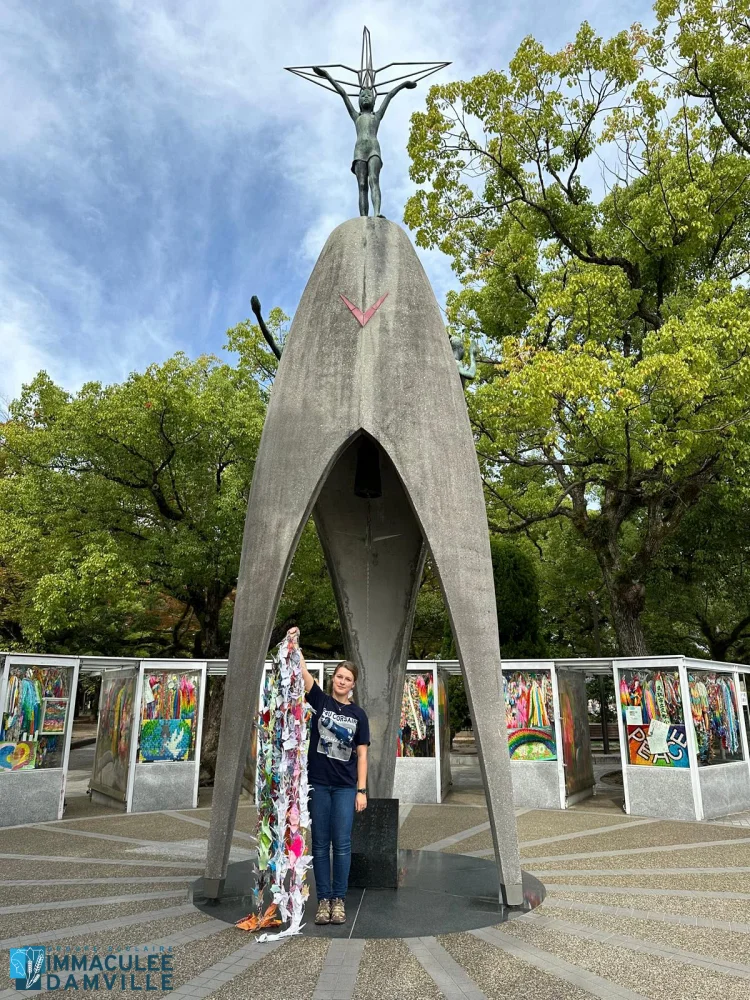 C’est chose faite ! Durant les vacances, Diane, une ancienne élève aujourd’hui scolarisée au lycée, s’est rendue à Hiroshima, au Mémorial de la paix, pour y déposer, à l’instar de nombreux japonais, nos oiseaux.