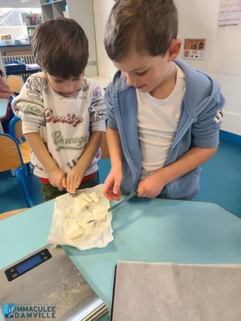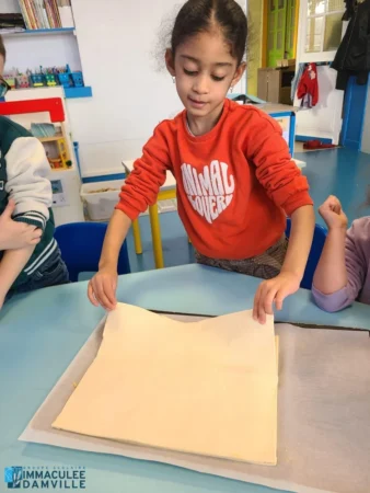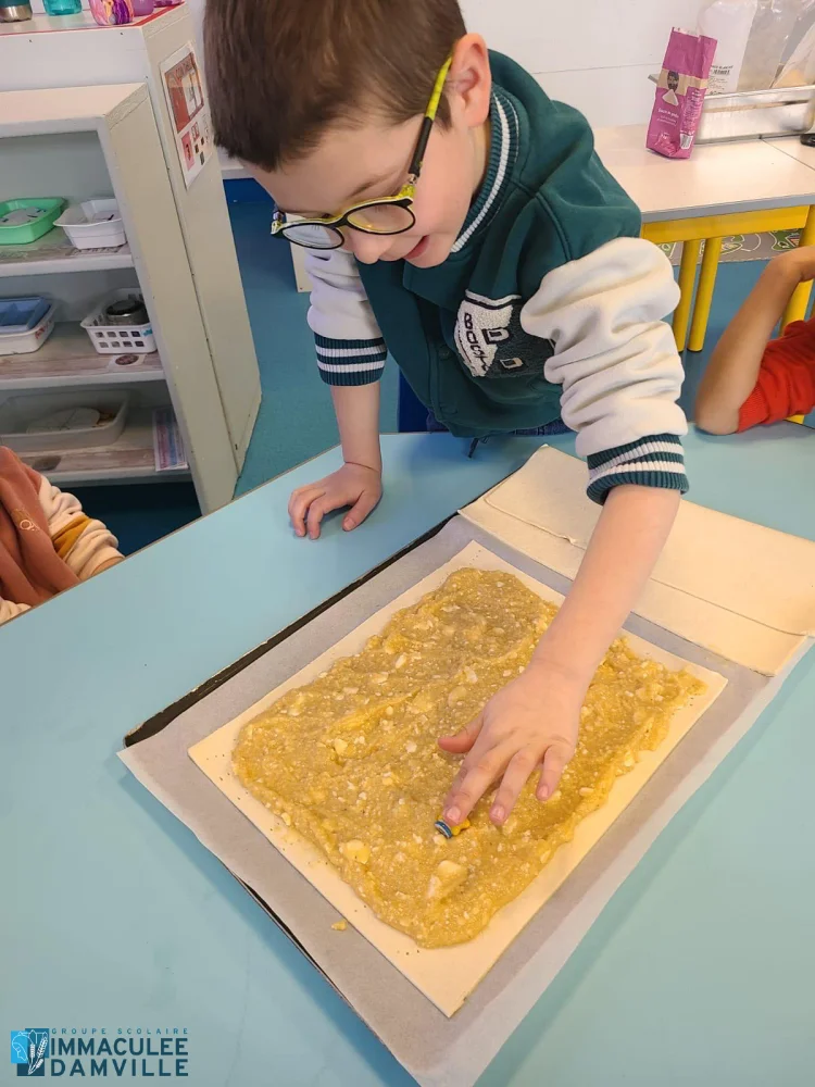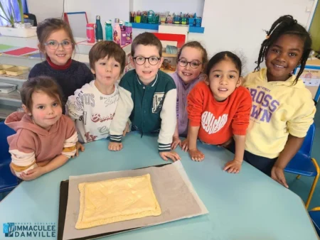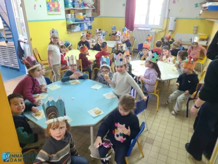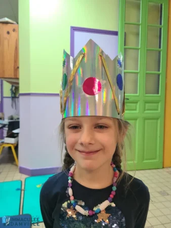Les enfants des trois classes de maternelle ont confectionné leur couronne puis préparé la galette. Ils l’ont ensuite dégustée tous ensemble en espérant devenir un roi ou une reine. L’occasion de manipuler des matières, des outils, de découvrir une recette, de mobiliser du vocabulaire, d’exercer leurs talents artistiques mais aussi de se régaler tous ensemble.