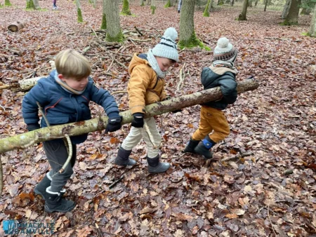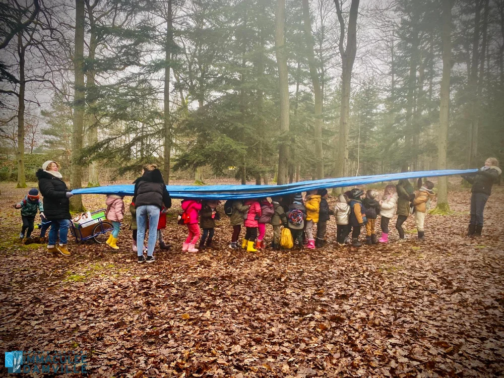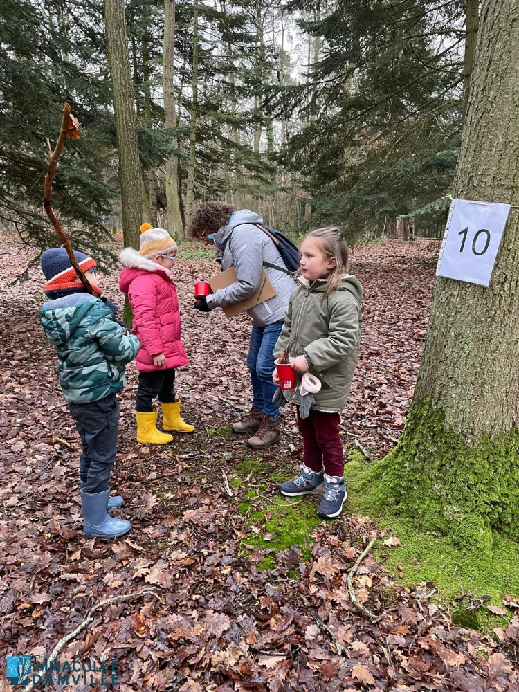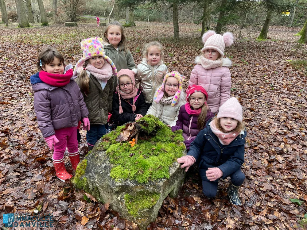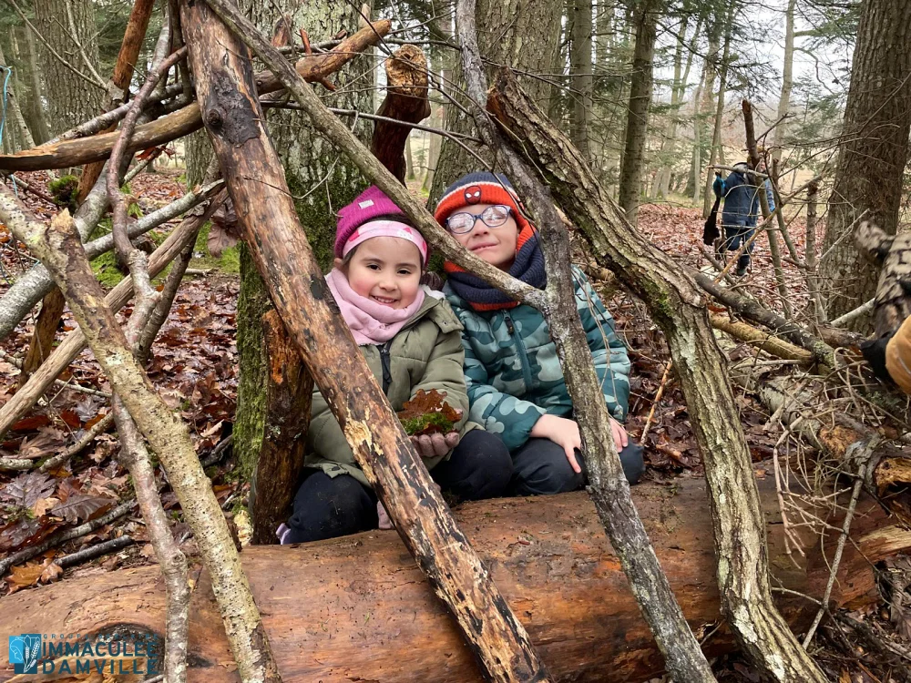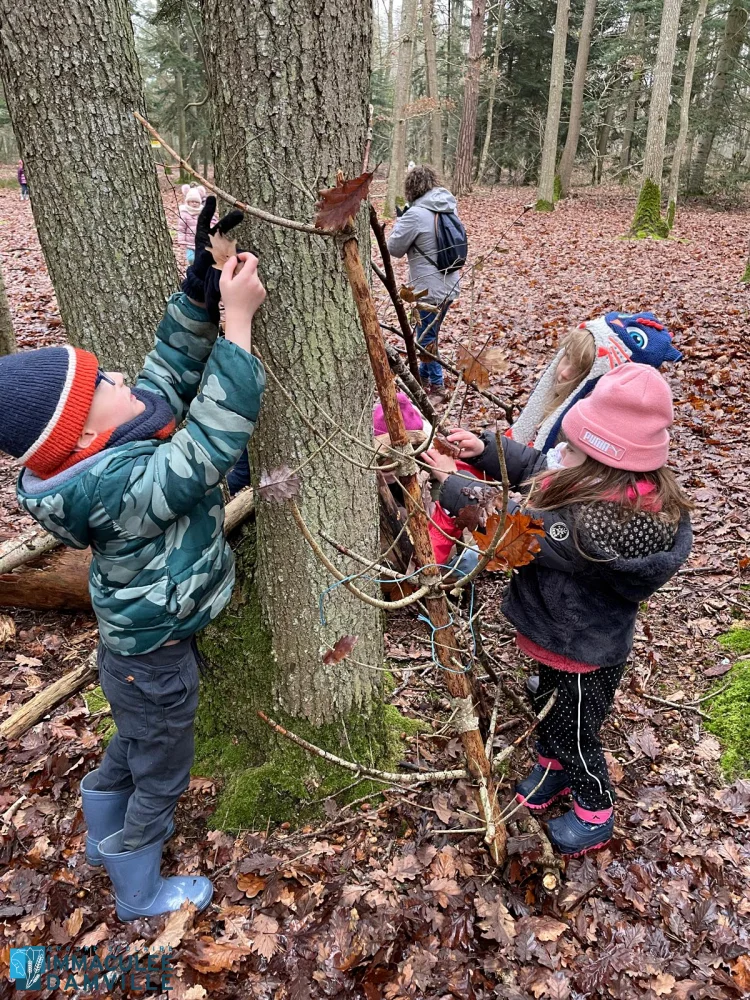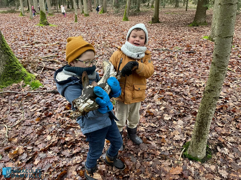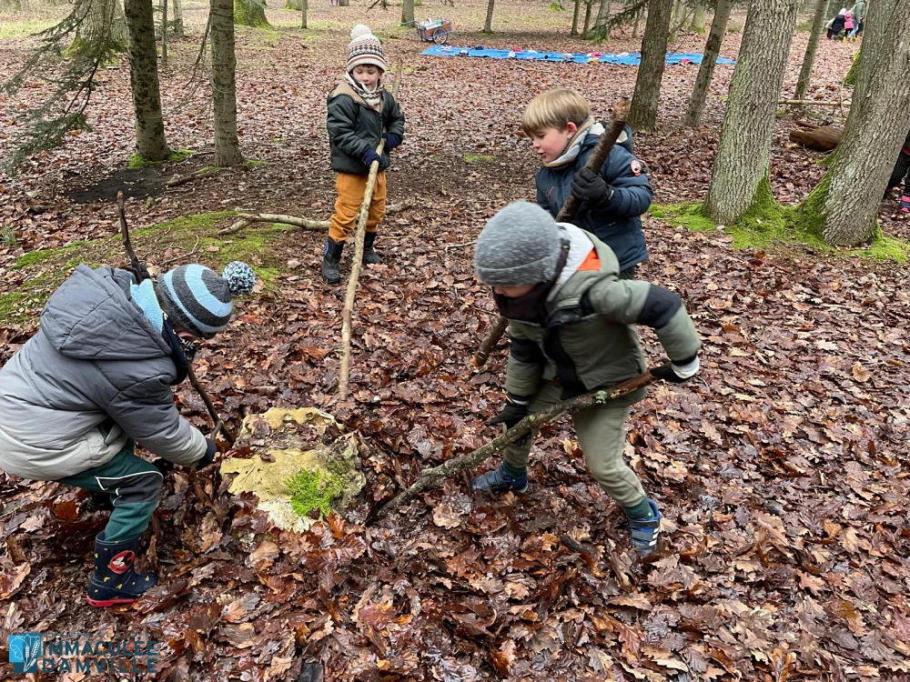 Jeu libre : place à la créativité, l’entraide, la coopération, au développement de la débrouillardise et du langage. Les enfants se sont tous investis d’une mission. Ils étaient fiers de présenter ce qu’ils avaient fait à leurs camarades : construction de cabanes, décoration d’un sapin, opération déterrer un rocher, construction d’un hôtel à insectes, land’art, feu de camp.