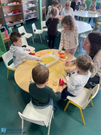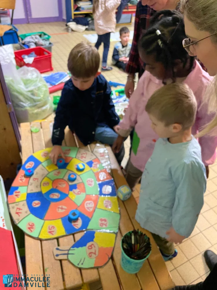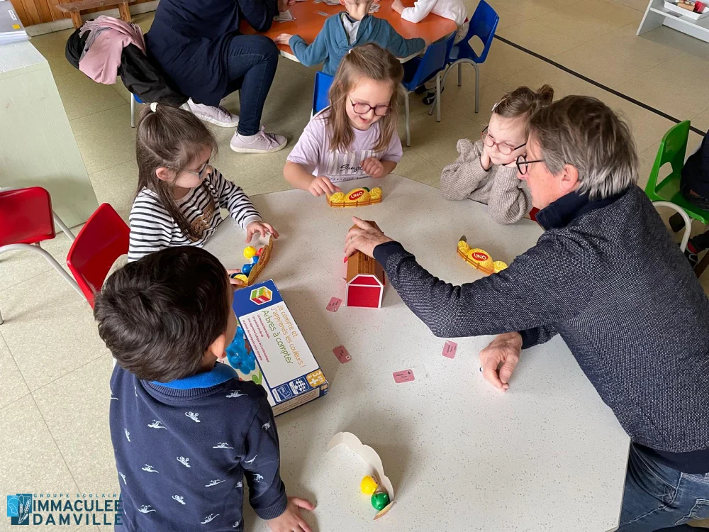 De nombreux parents, que nous remercions, ont passé la matinée avec nous pour accompagner les enfants des 3 classes de maternelle lors d’une matinée de jeux. Par petits groupes ils ont participé à des jeux de société, des jeux de relais sportifs, un jeu de l’oie artistique et des jeux de transvasement. La bonne humeur et la bonne ambiance étaient au rendez-vous.
