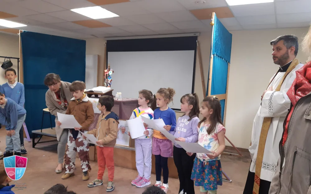 De belles célébrations de Pâques qui ont rassemblé, jeudi 24 avril tour à tour les cycles 3 et les cycles 2 au Val D’Iton puis les maternelles à la chapelle de l’établissement. Merci au père Charles et au sœur de la communauté saint Paul de Chartres pour l’animation ainsi qu’aux élèves de CM2 qui avaient formé une Chorale à cette occasion afin de fêter tous ensemble Jésus ressuscité !