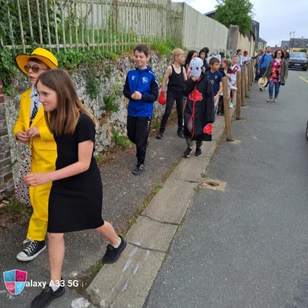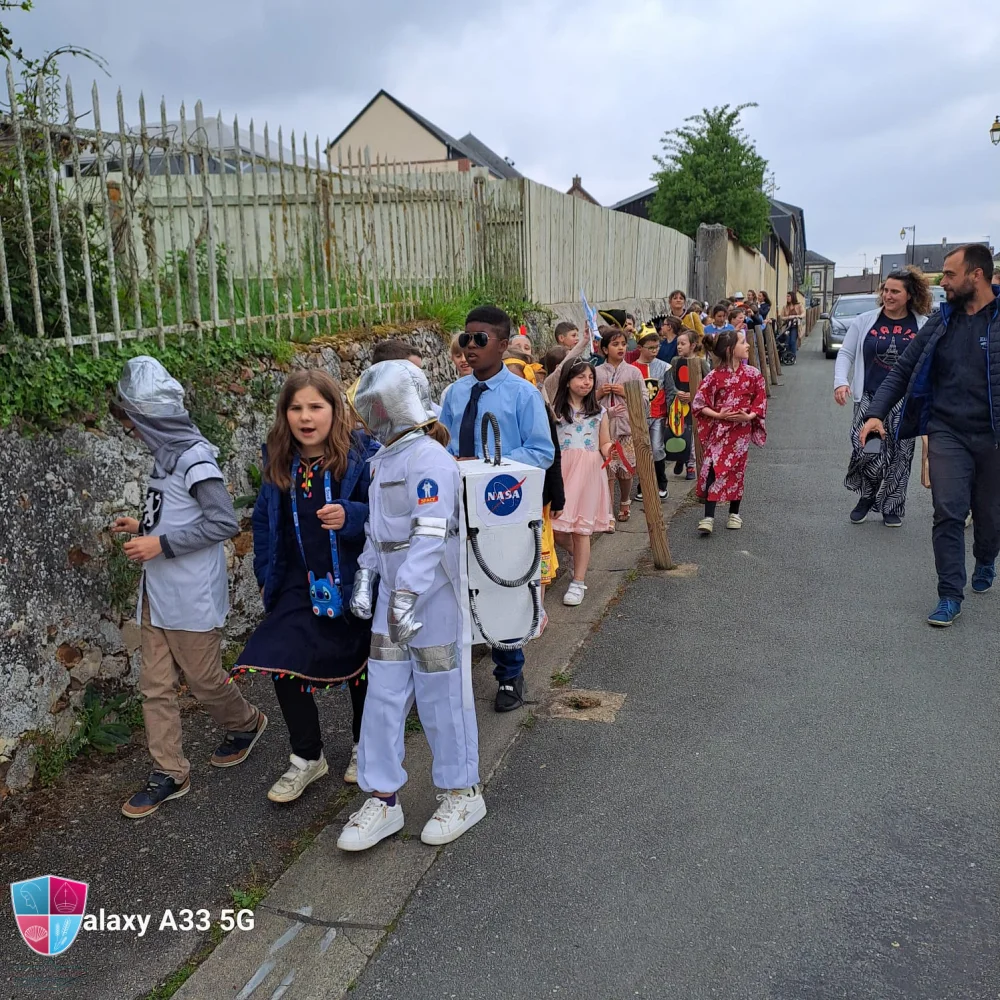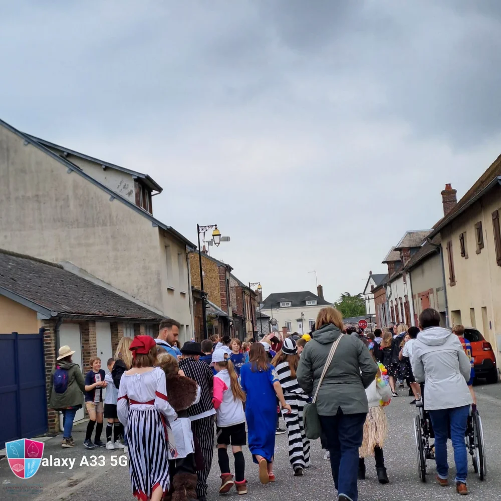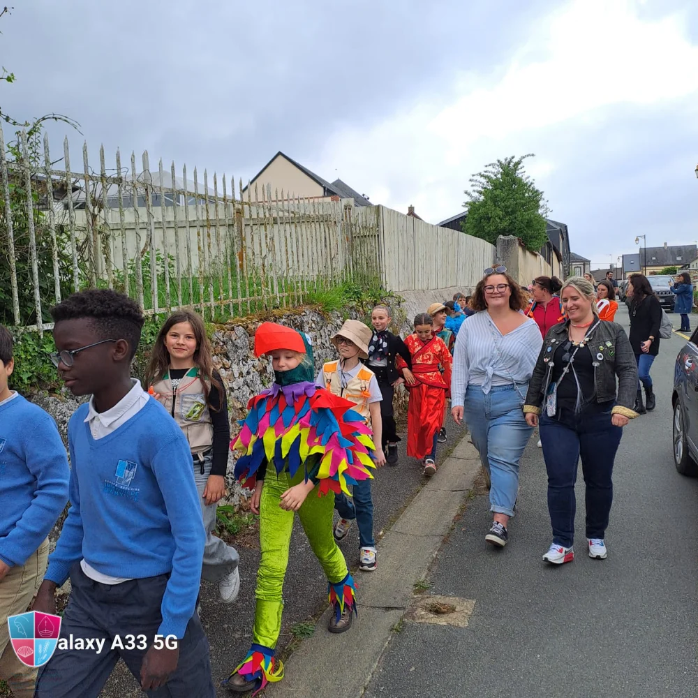 Jeudi 24 avril tous les élèves de la petite section au cm2 ont participé avec enthousiasme au carnaval. Les enfants vêtus de magnifiques costumes ont défilé avec fierté dans les rues de Damville. Un immense merci aux élèves pour leur créativité, aux enseignants pour leur implication et aux parents accompagnateurs pour leur précieuse aide tout au long du défilé. À leur retour, les enfants ont pu savourer une délicieuse crêpe accompagnée d’une boisson, offertes généreusement par l’APEL, que nous remercions chaleureusement pour leur présence et leur engagement. Bravo à tous pour cette belle fête !